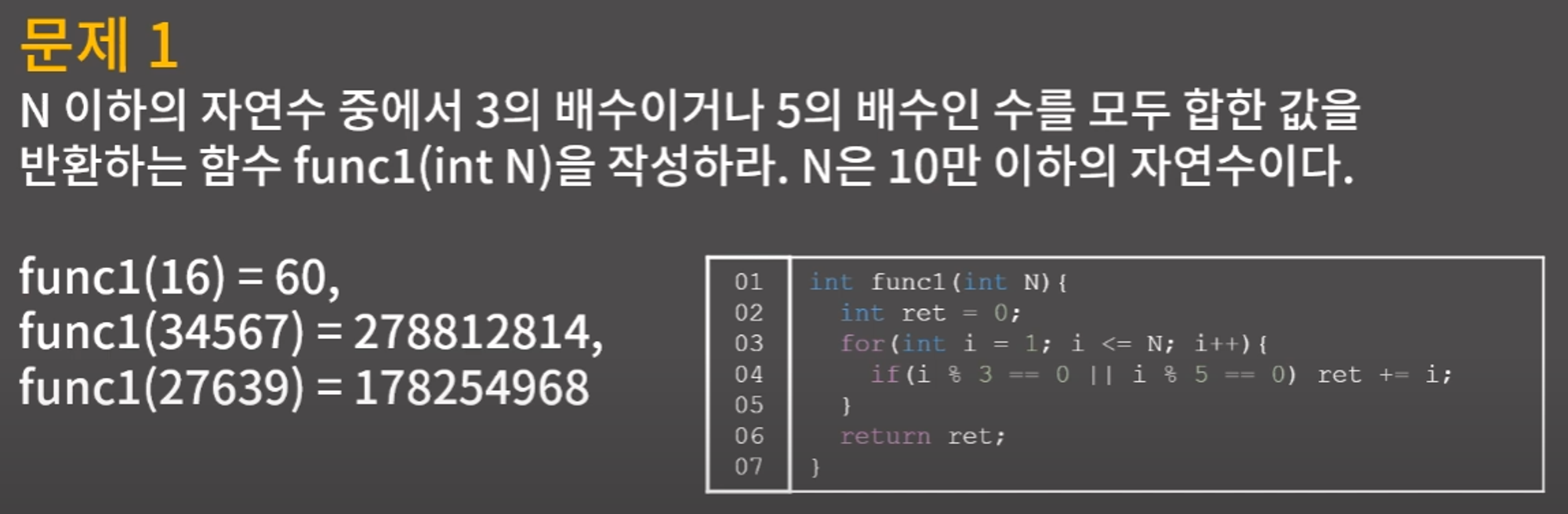 1번 문제는 i가 N만큼 증가가 되기 때문에 O(n) 의 시간복잡도를 가집니다.