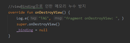 이는 분명한 메모리 누수이기 때문에 binding을 null로 비워줘야 한다.