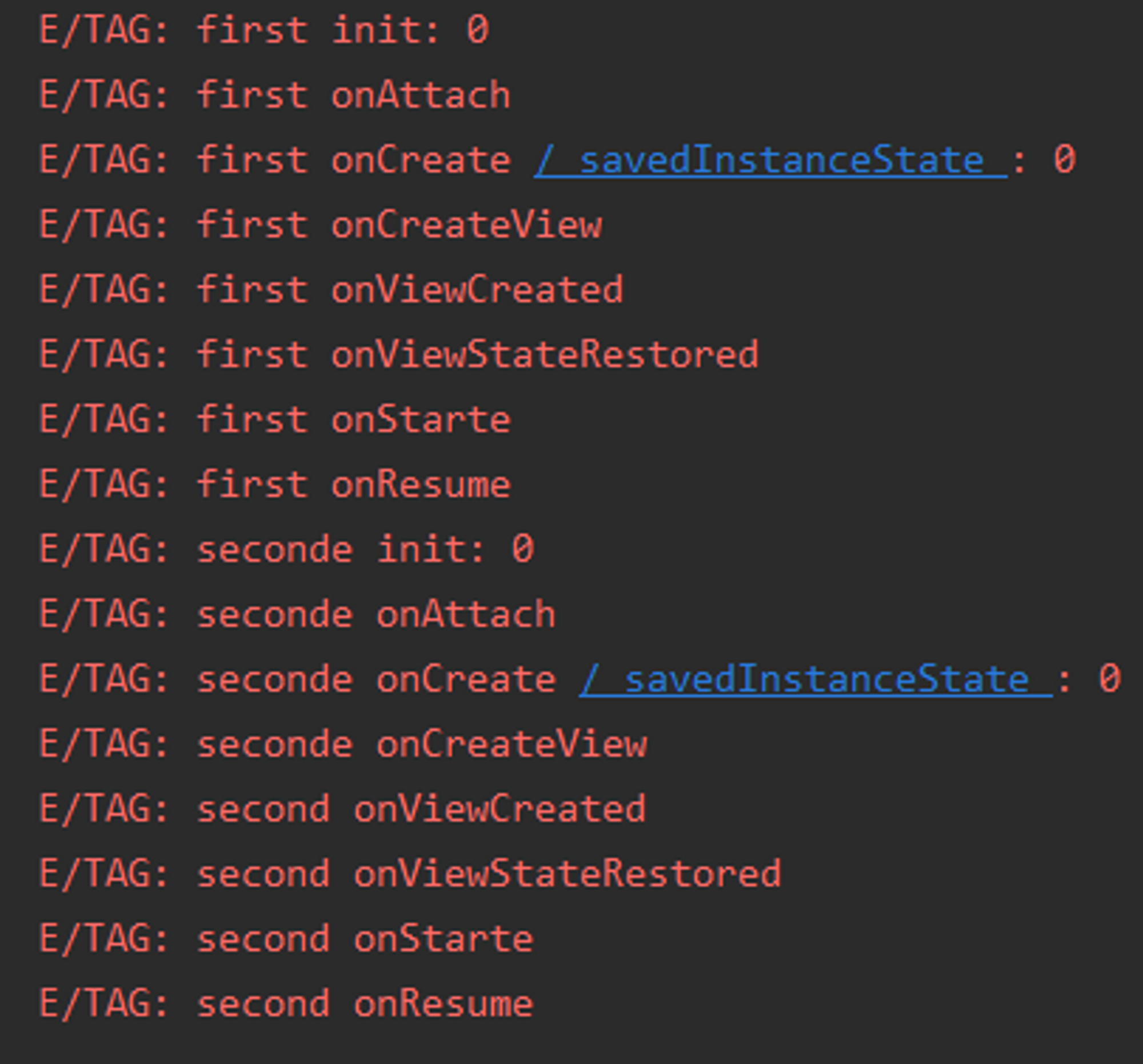 first 의 onDestroyView 가 호출된 후, seconde onResume 실행되며 대기.